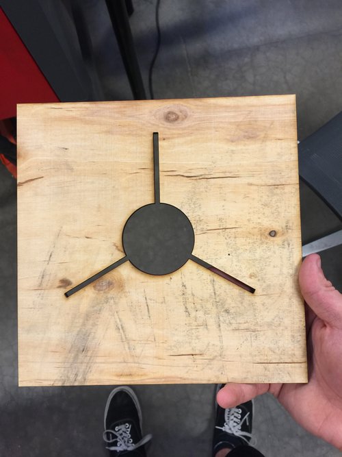 Solution: The unique shape and sizing of the fins proved difficult to work with. In order to cut precise and repetitive airfoils on the fins a jig was design to mount a fin at a precise angle, using a band saw precise cuts were done
